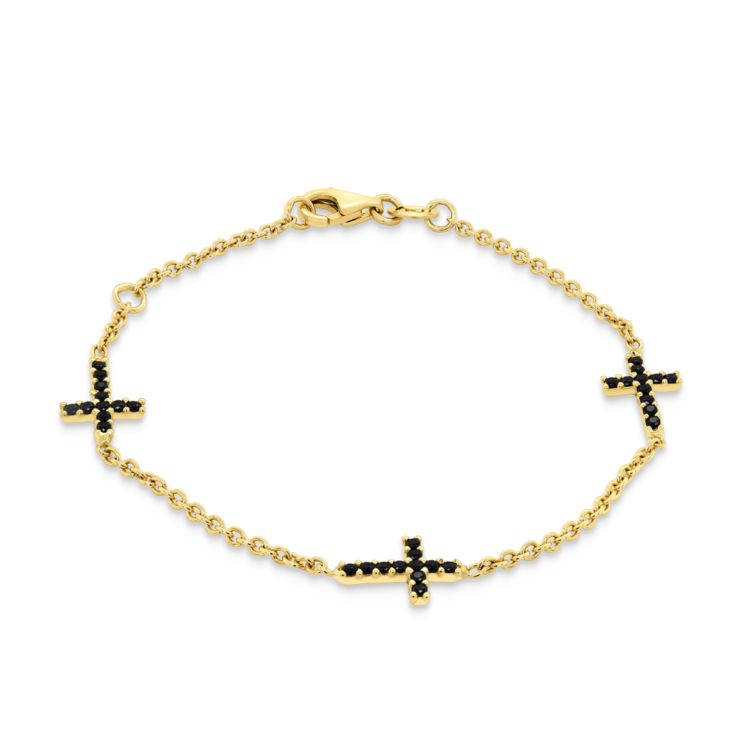 Brățară din aur galben de 14K, pentru copii, cu elemente tip cruciulițe cu pietre Cubic Zirconia negre.
