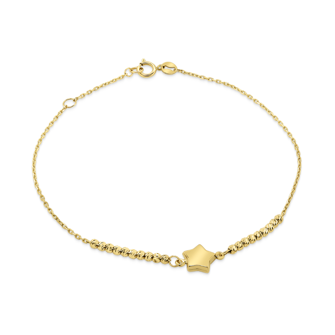 Brățară reglabilă din aur galben de 14K, cu biluțe fațetate și pandantiv stea.