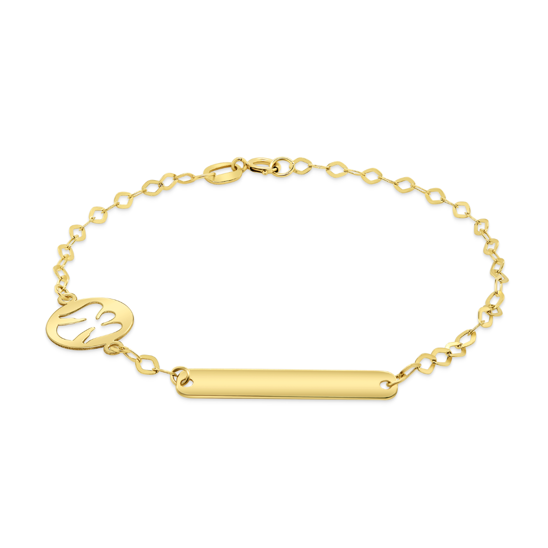 Brățară din aur galben de 14K, cu plăcuță și pandantiv îngeraș.