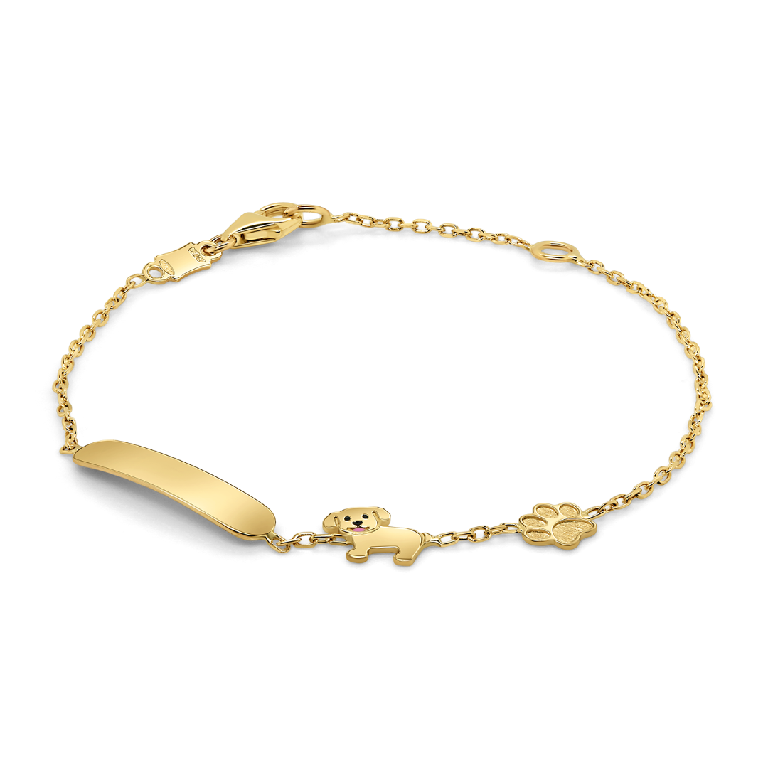 Brățară din aur galben de 14K, cu plăcuță și pandantive.
