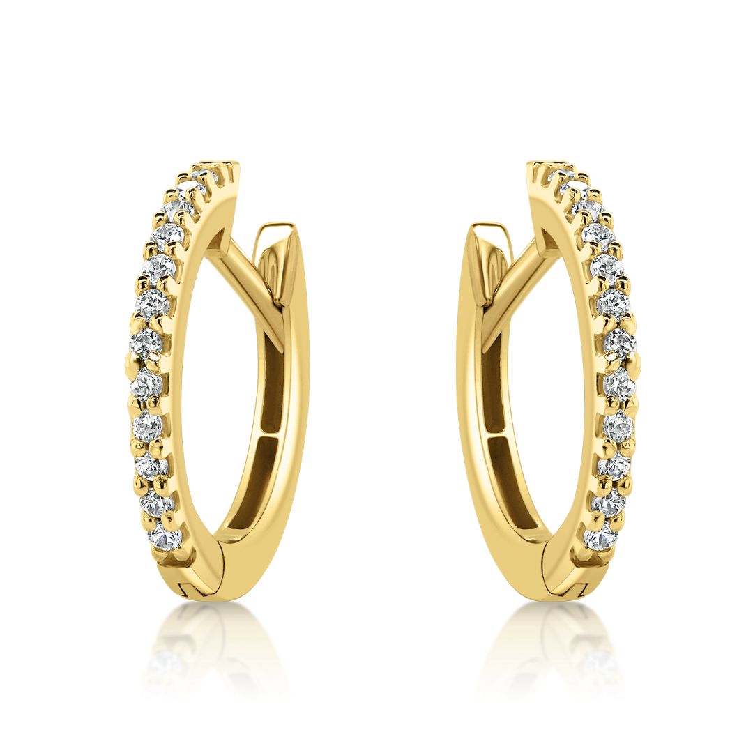 Cercei din aur galben de 14K cu pietre Cubic Zirconia albe.