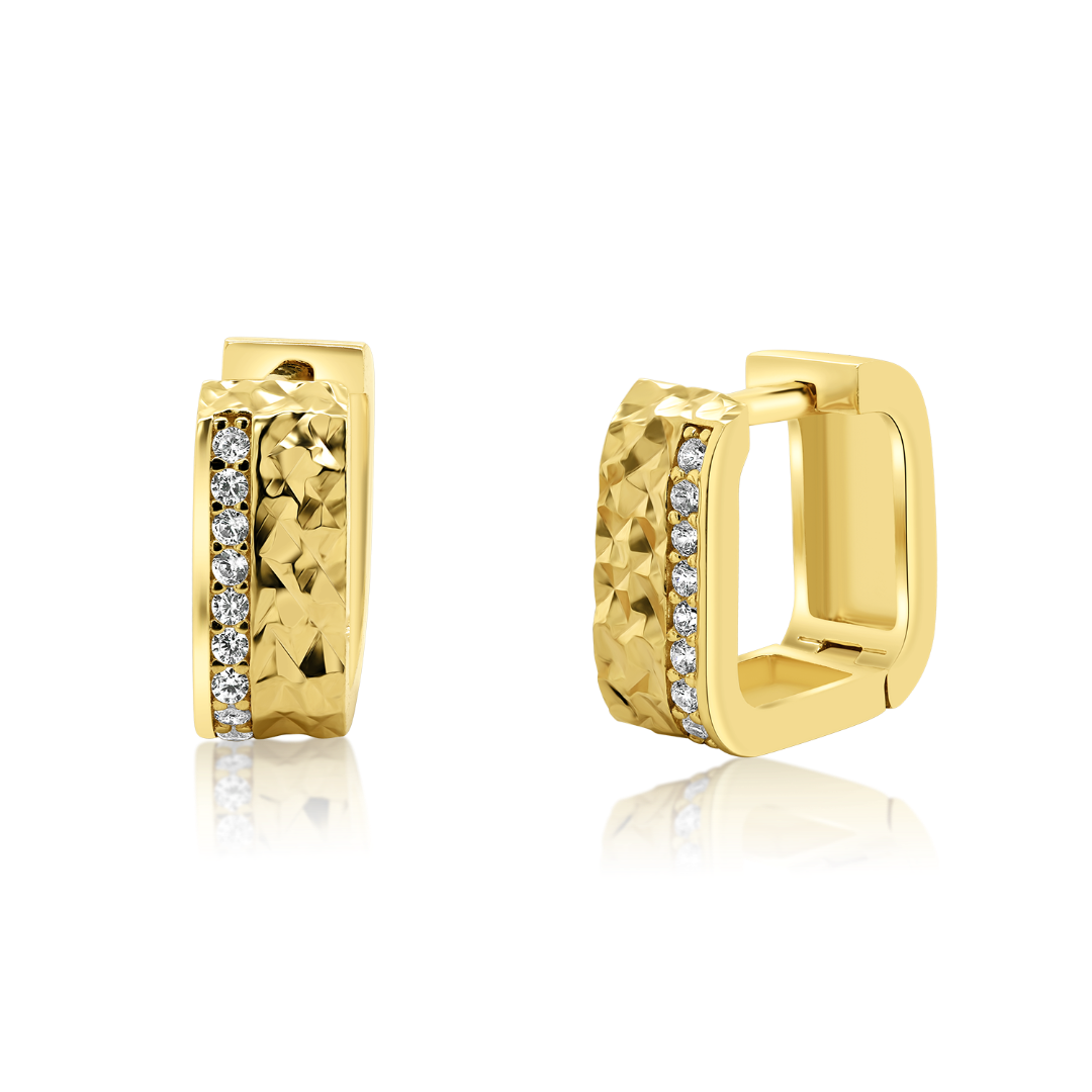 Cercei fațetați din aur galben de 14K cu pietre Cubic Zirconia albe.
