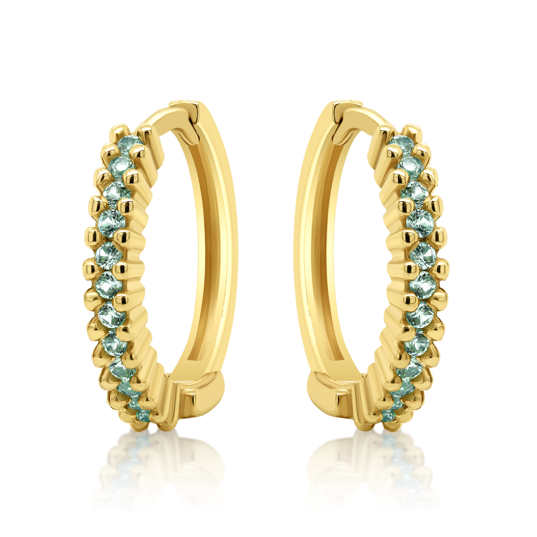 Cercei pntru copii din aur galben de 14K cu pietre cubic zirconia.