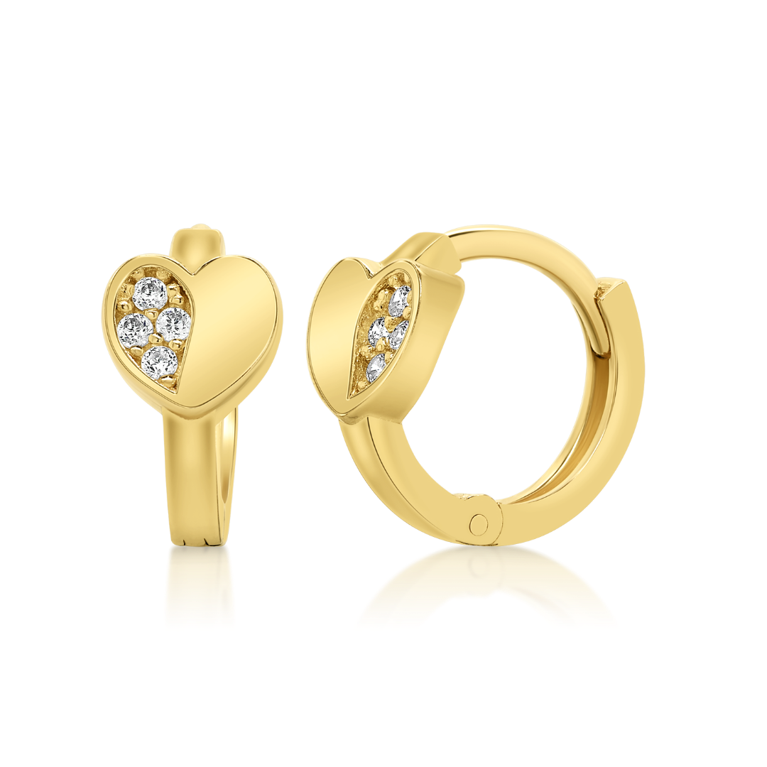 Cercei pentru copii din aur galben de 14K, cu pietre Cubic Zirconia albe.