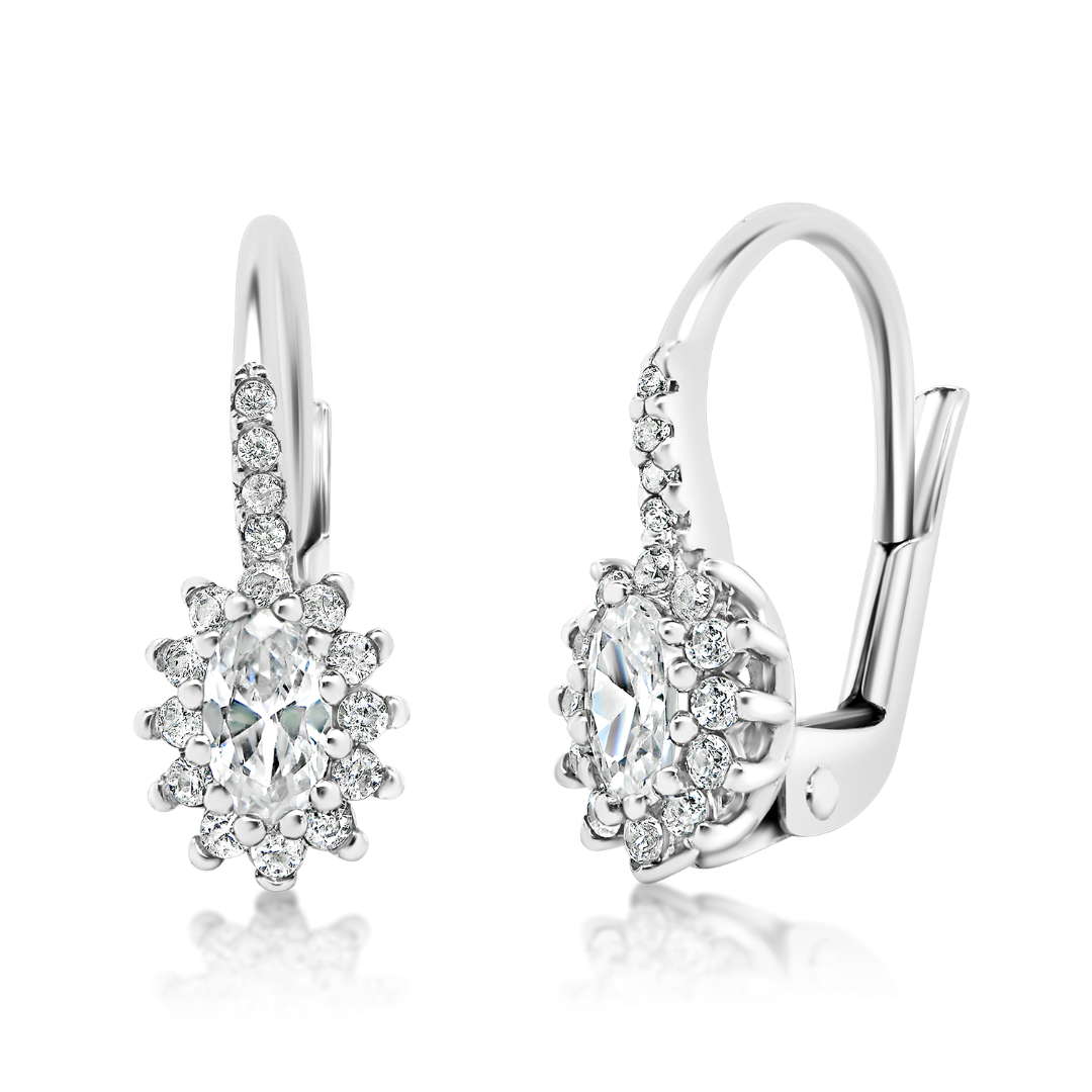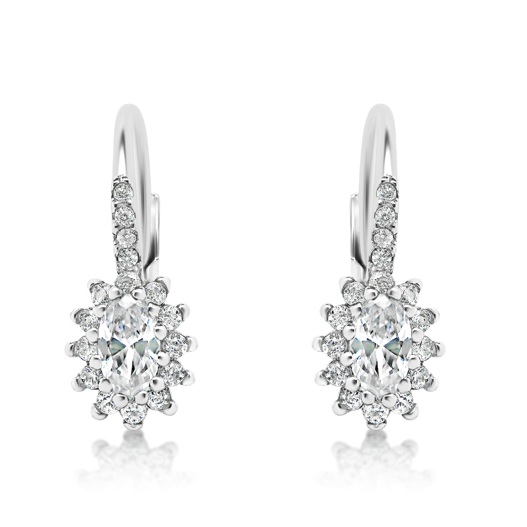 Cercei din aur alb de 14K cu pietre Cubic Zirconia.