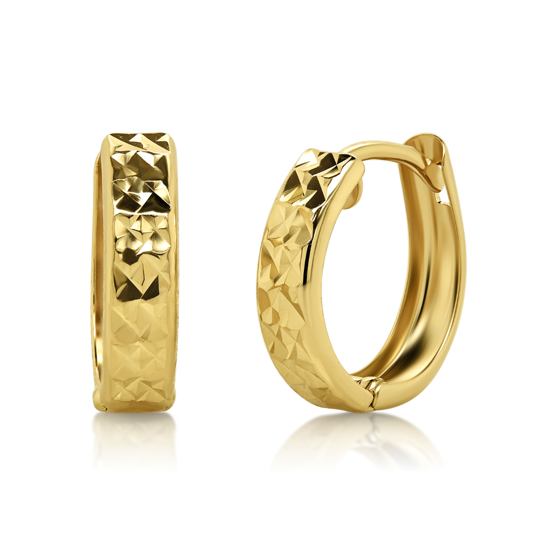 Cercei pentru copii din aur galben de 14K cu model fațetat.