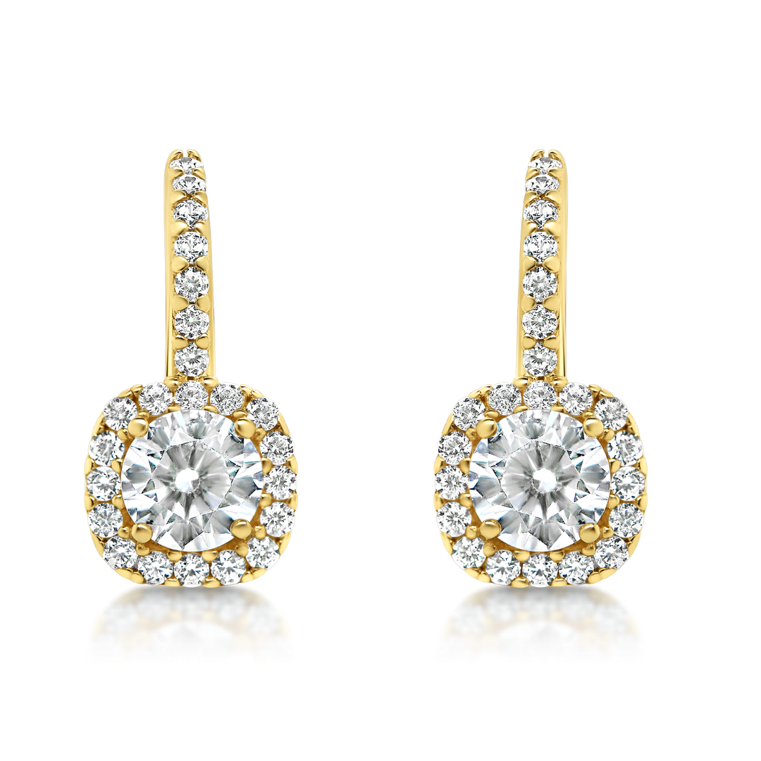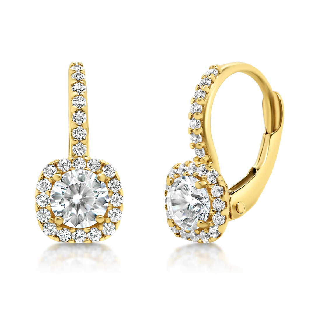 Cercei din aur galben de 14K cu pietre Cubic Zirconia albe.