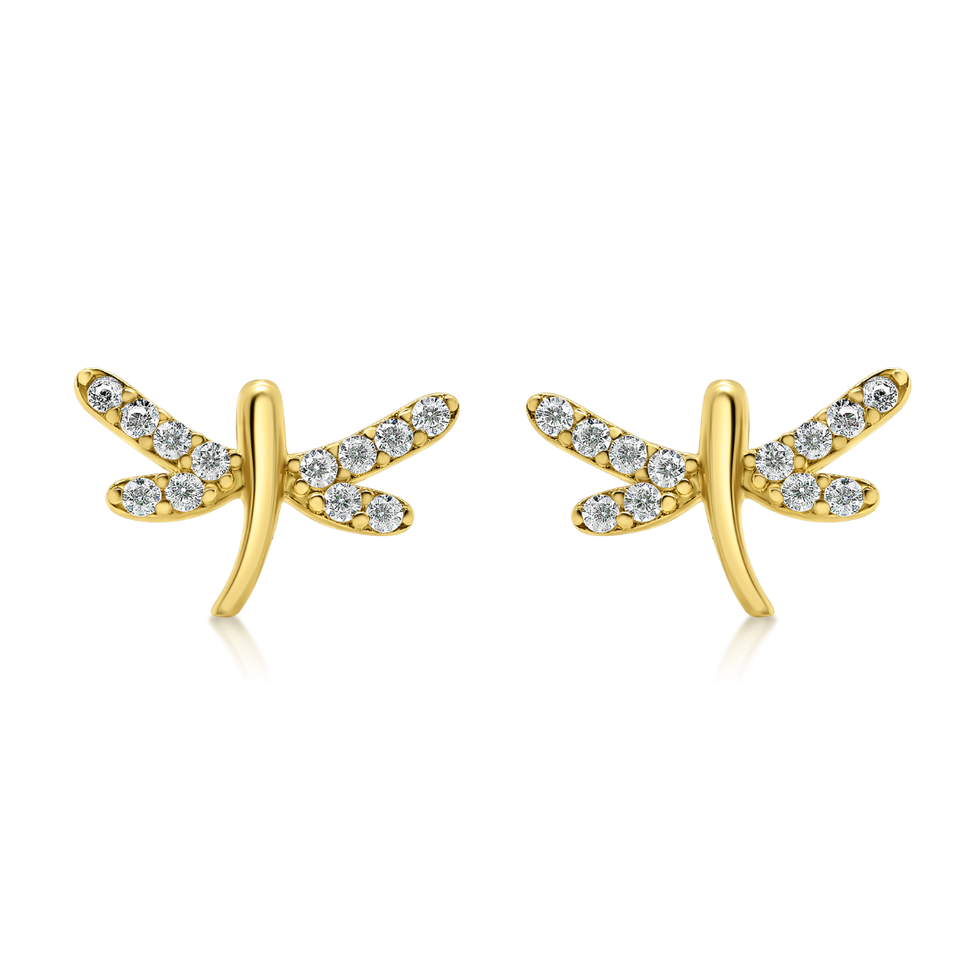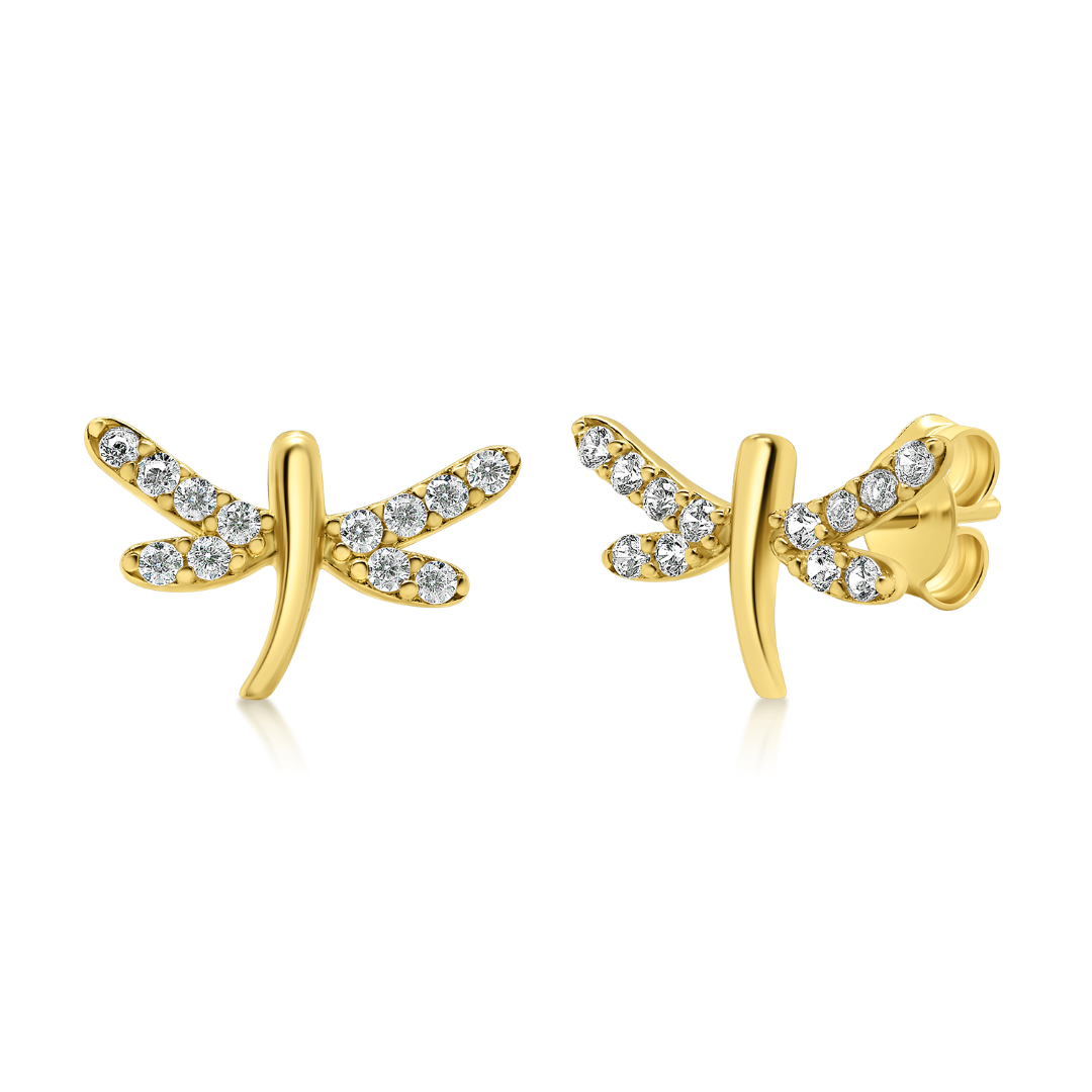 Cercei din aur galben de 14K cu pietre Cubic Zirconia.