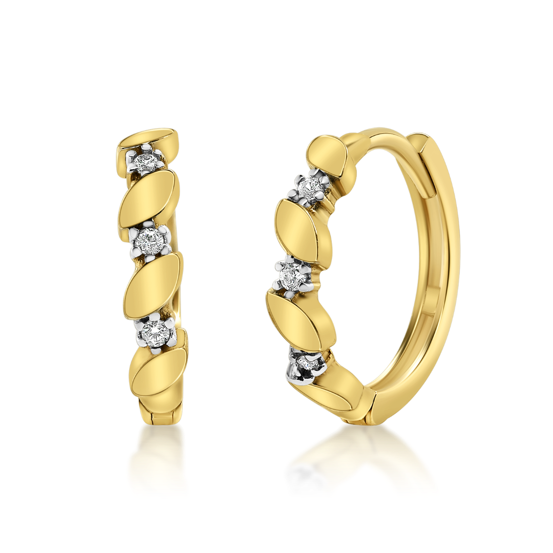 Cercei din aur galben de 14K cu pietre Cubic Zirconia.