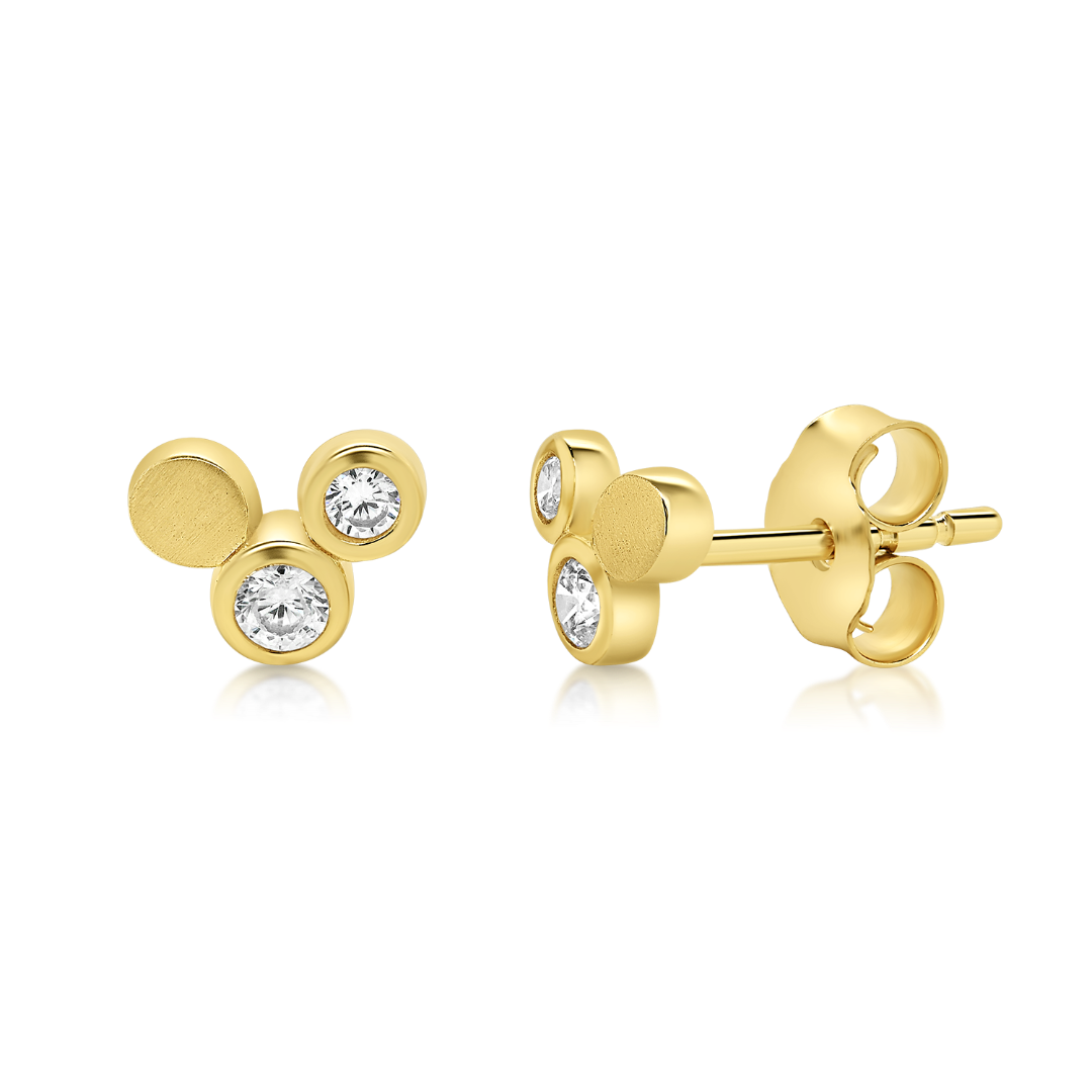 Cercei pentru copii din aur galben de 14K cu elemente sidefate și pietre cubic zirconia.