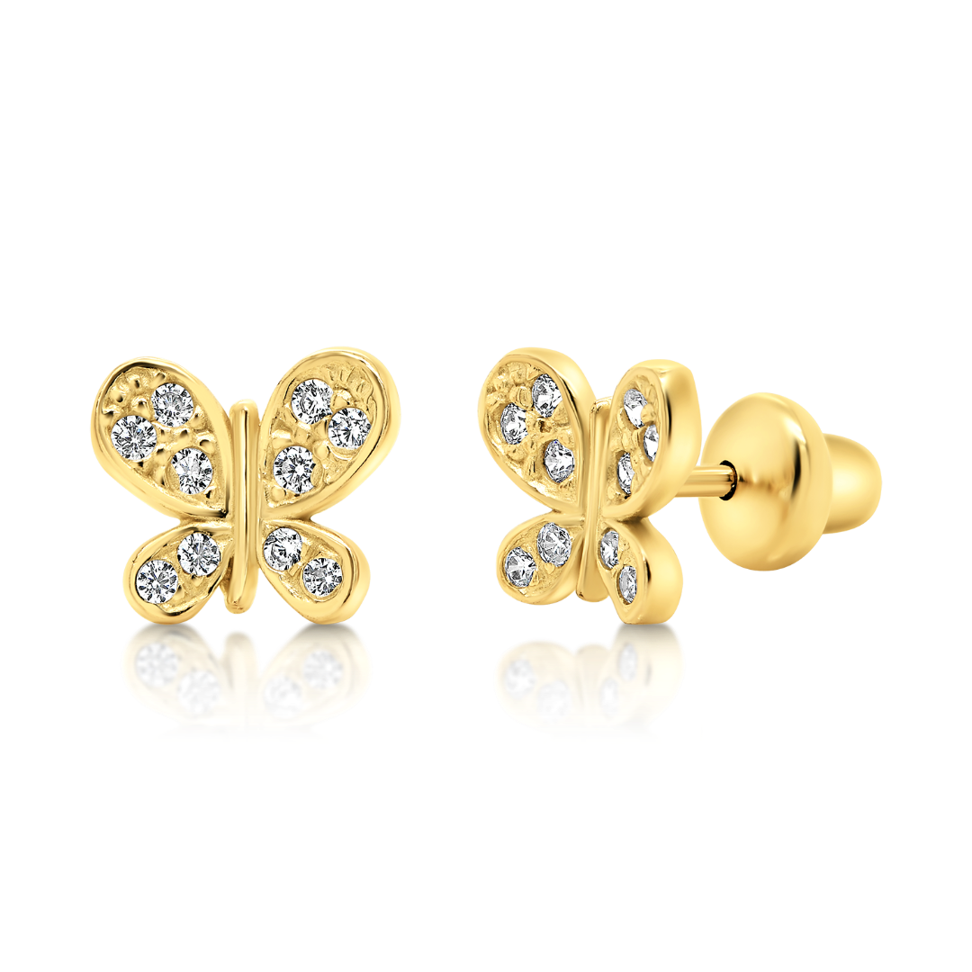 Cercei pentru copii din aur galben de 14K cu pietre Cubic Zirconia.