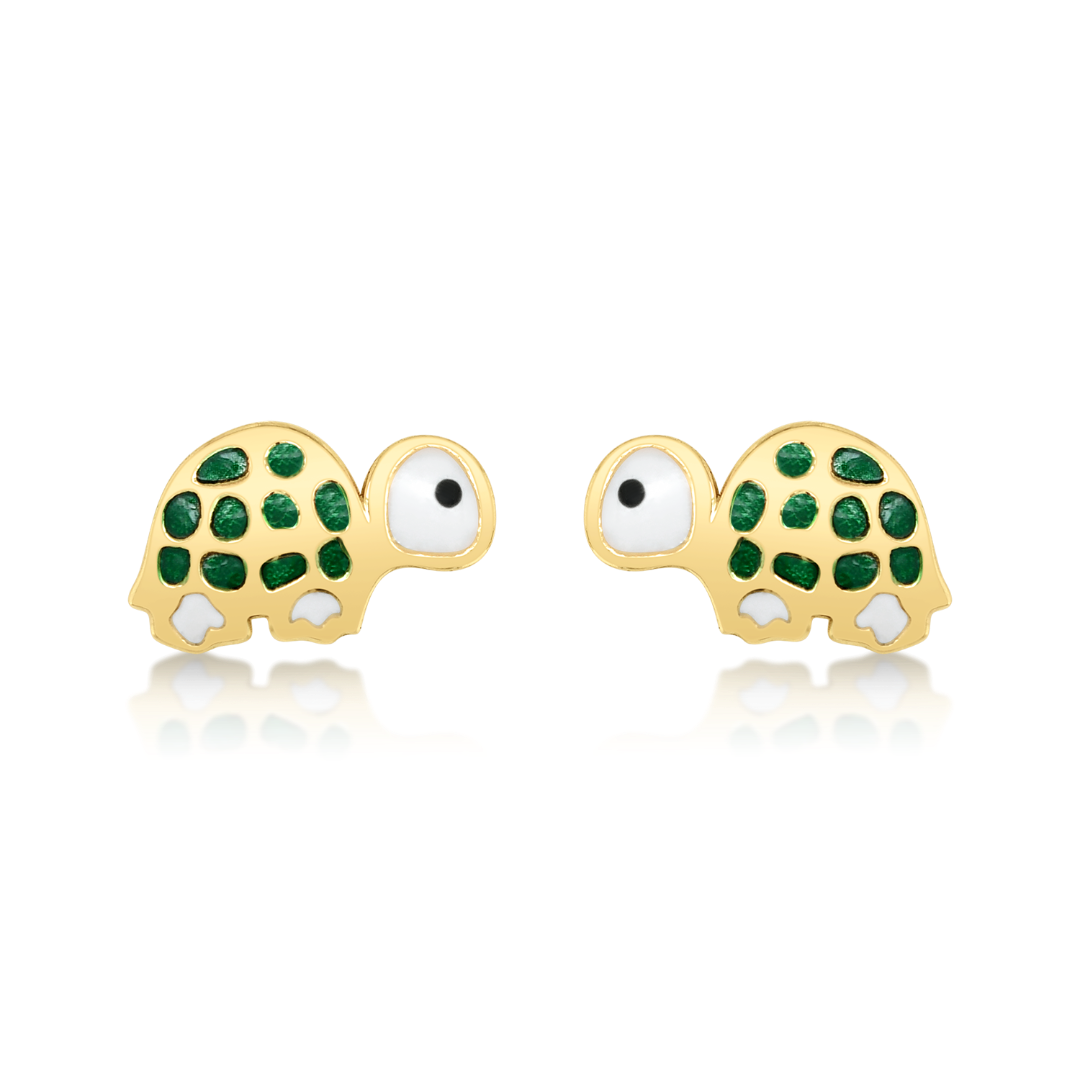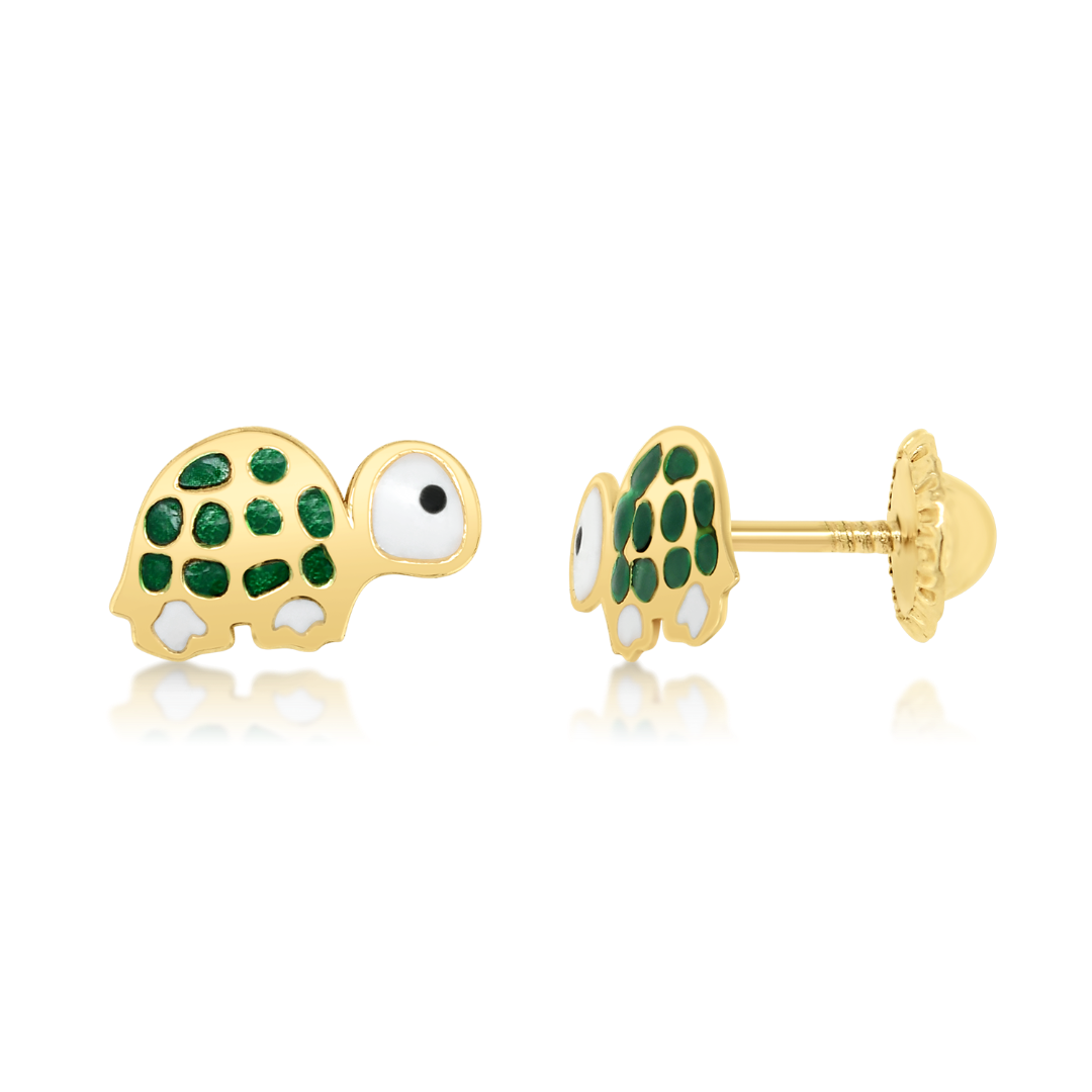 Cercei din aur galben de 14K pentru copii cu Email colorat și protecție.