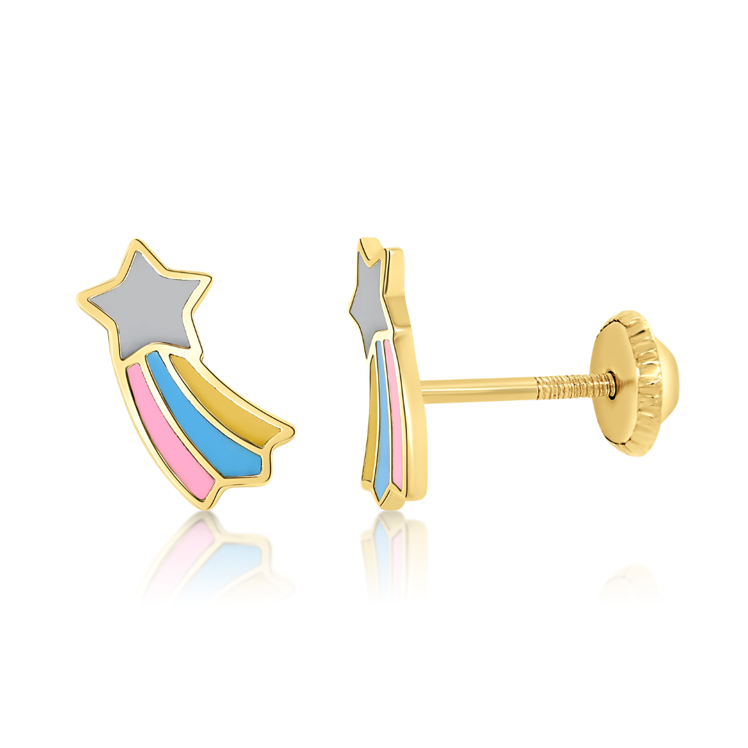 Cercei pentru copii din aur galben de 14K cu Email colorat.
