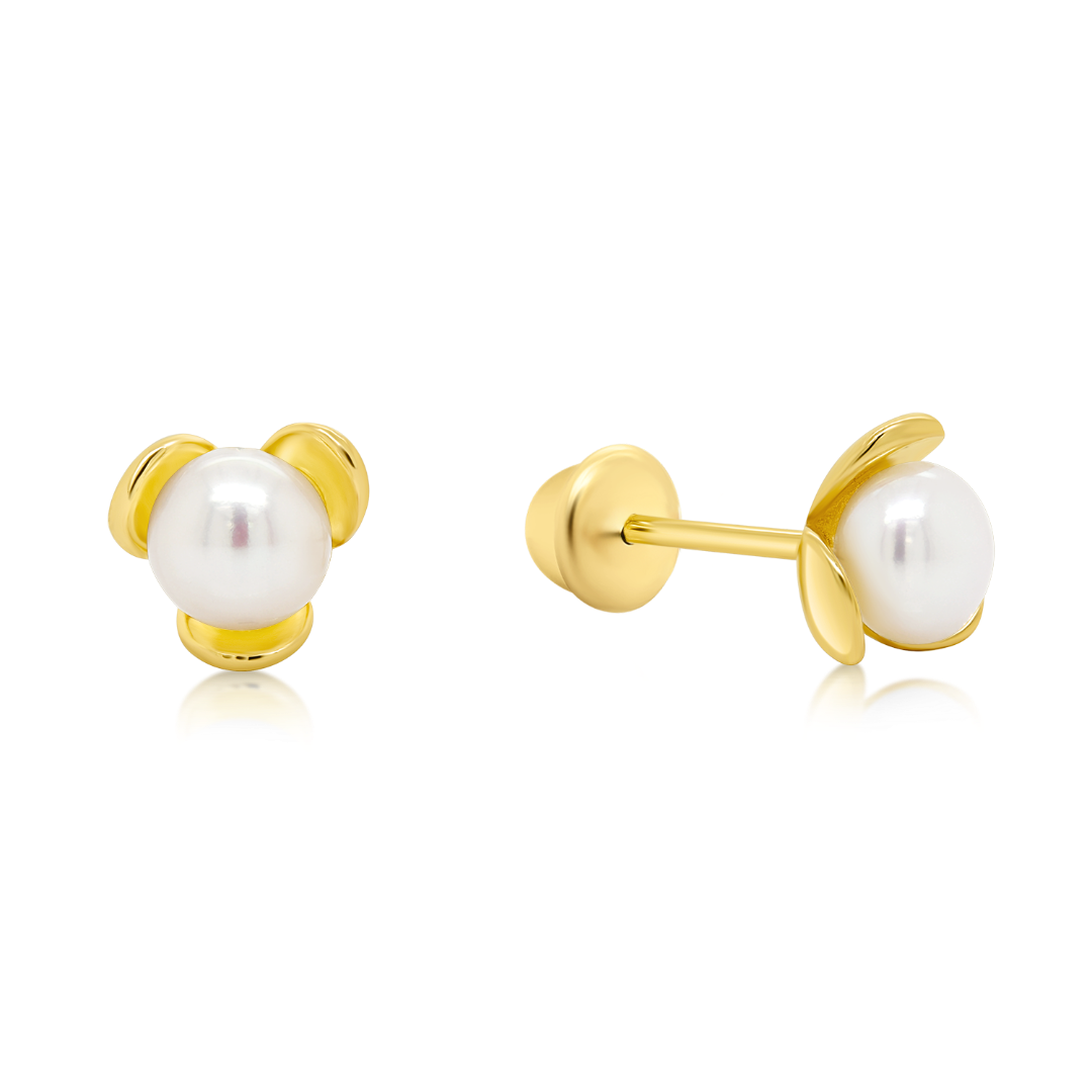 Cercei cu protecție din aur galben de 14K cu Perle.