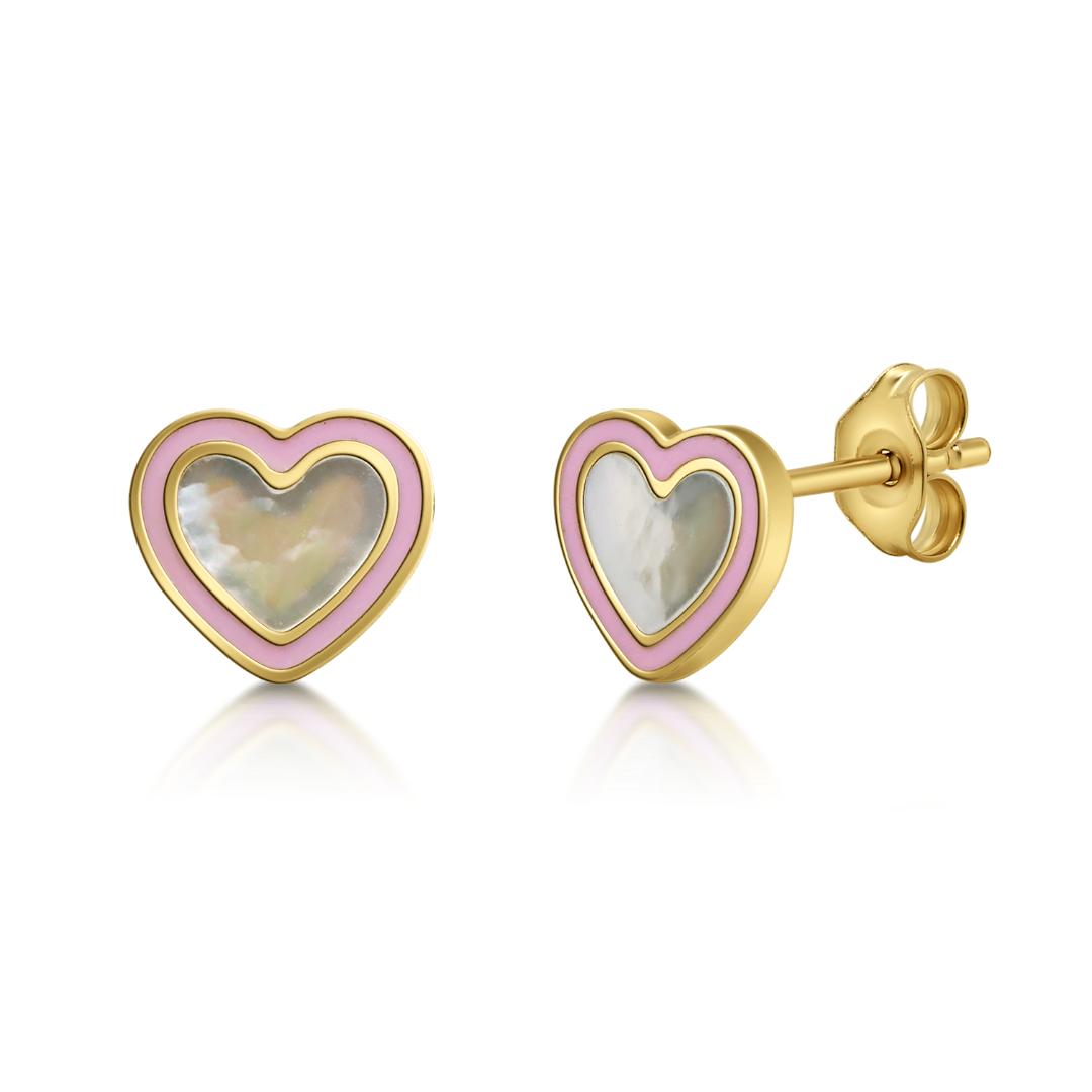 Cercei în formă de inimă din aur galben de 14K cu Sidef colorat.