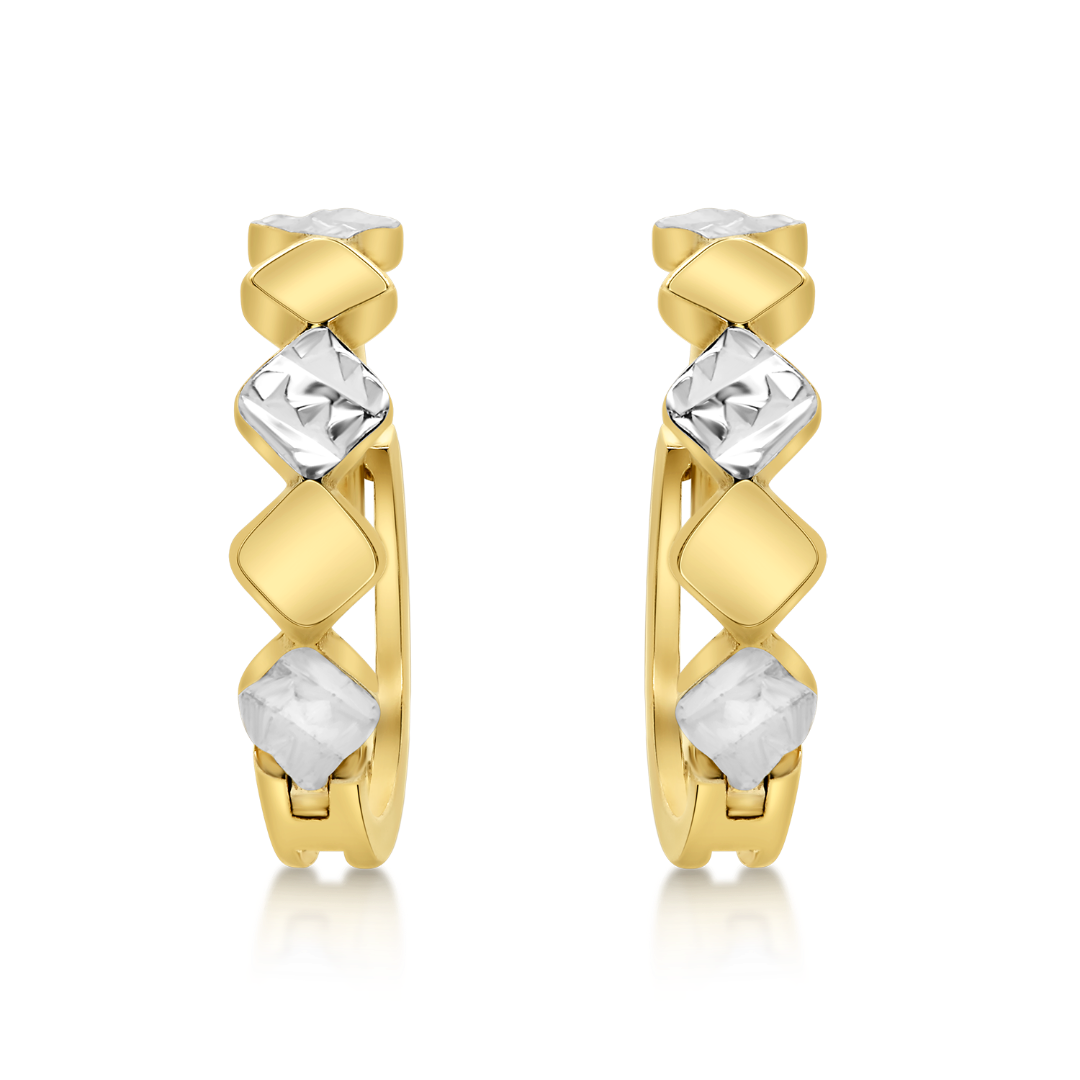 Cercei pentru copii din aur galben de 14K cu elemente fațetate din aur alb.