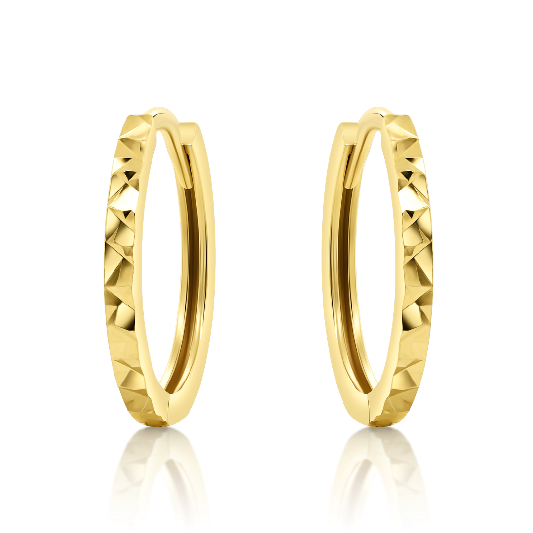 Cercei pentru copii din aur galben de 14K cu design fațetat.