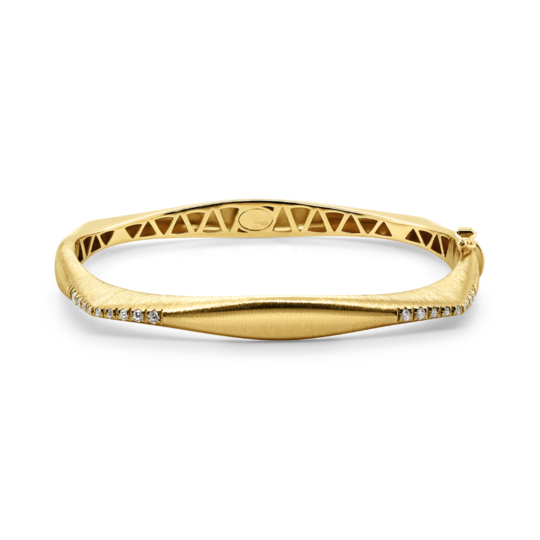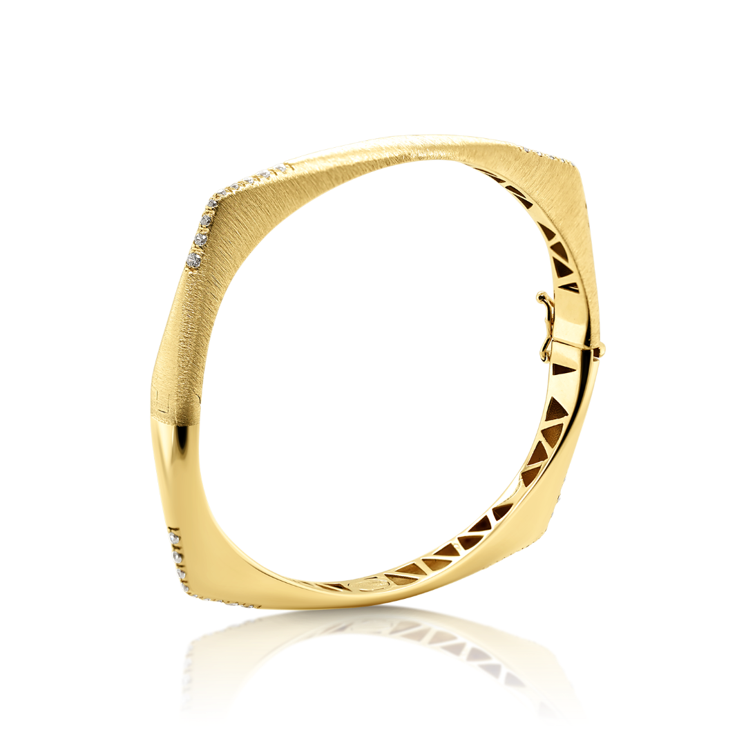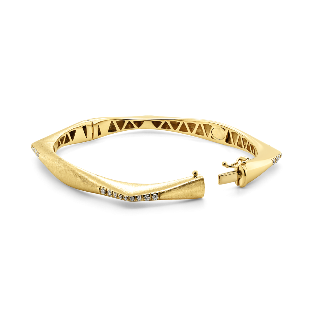 Brățară cu efect satinat din aur galben de 14K și zirconii incolore.