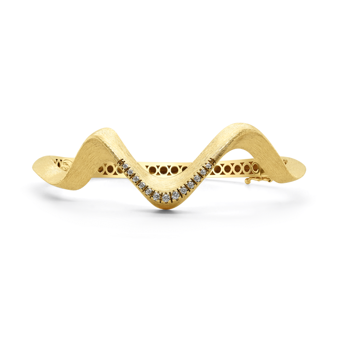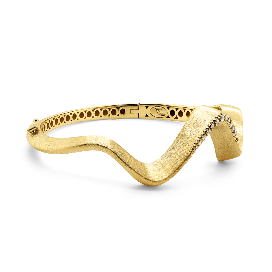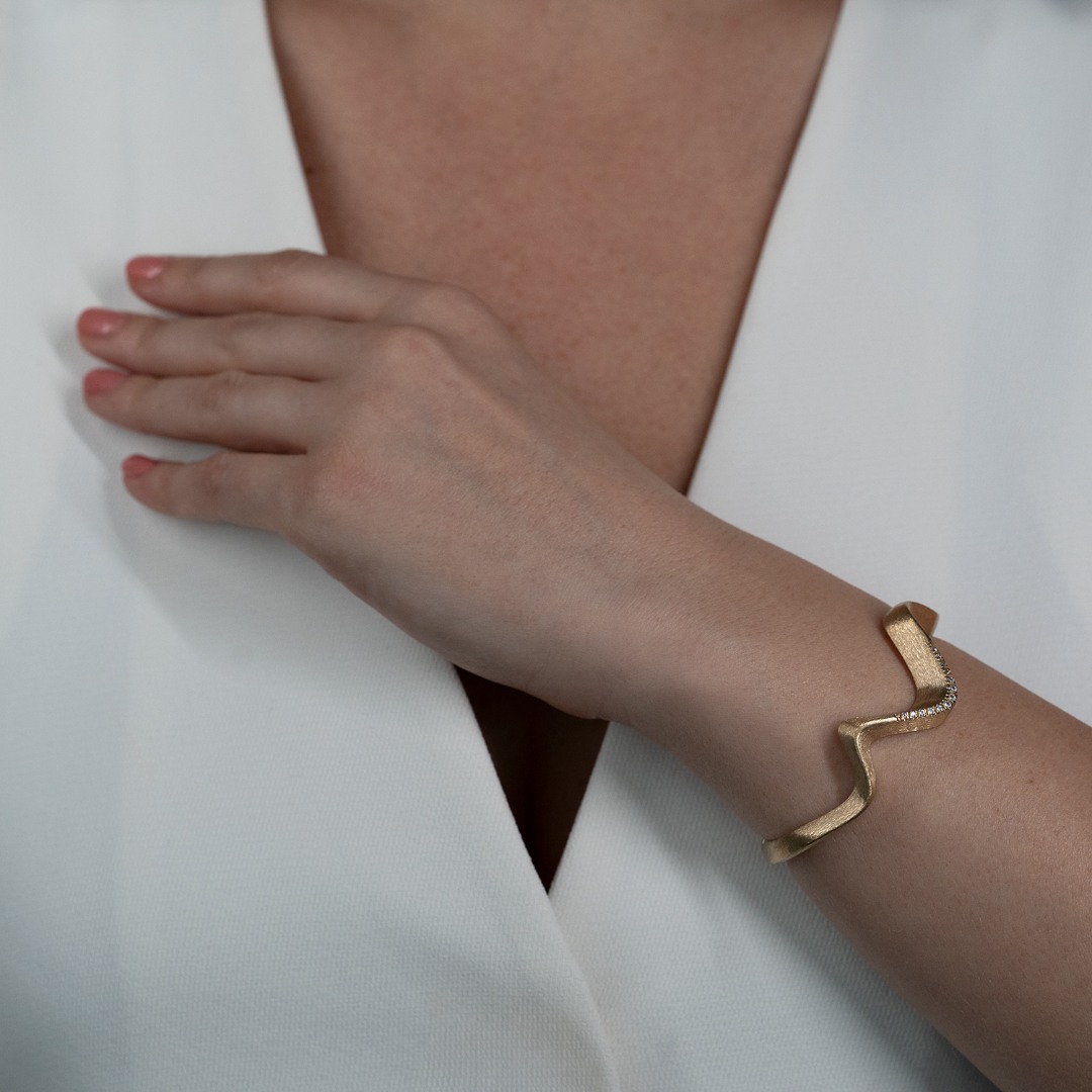 Brățară cu efect satinat din aur galben de 14K și zirconii incolore.