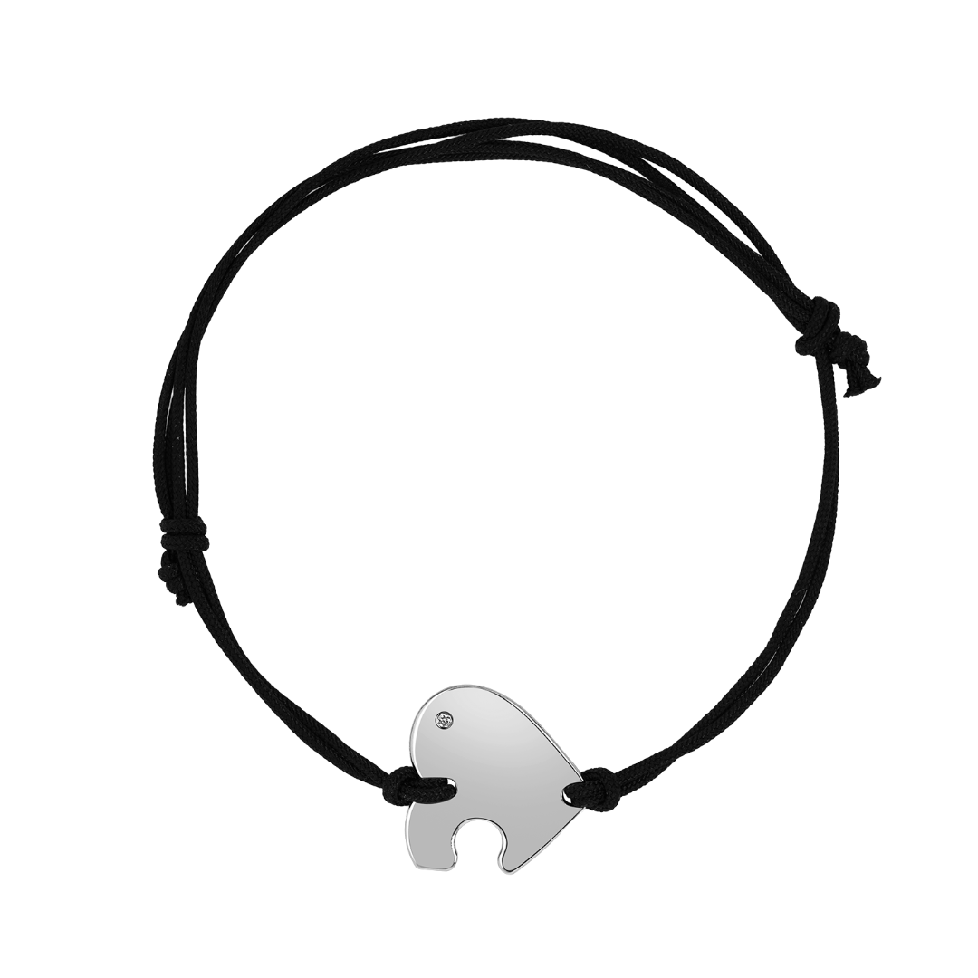 Brățară cu șnur și element inimă din aur alb de 14K cu Diamant natural Brilliant cut.