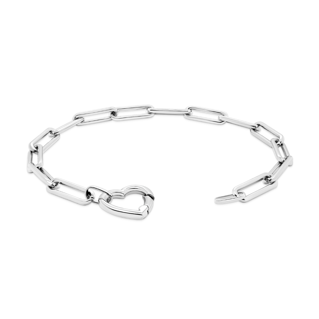Brățară din aur alb de 14K cu element în formă de inimă.