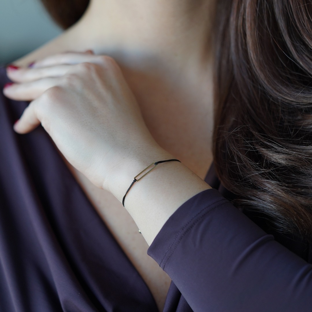 Brățară din aur galben de 14K cu șnur textil.