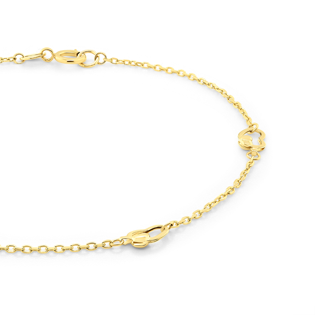 Brățară din aur galben de 14K cu pandantive inimă.