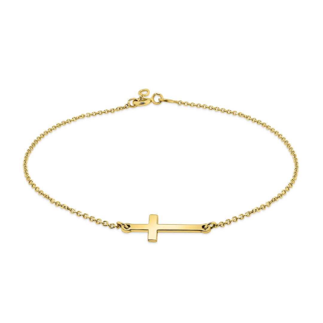 Brățară din aur galben de 14K cu pandantiv cruce.