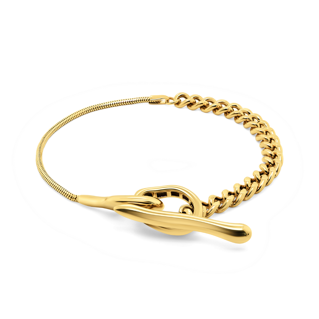 Brățară cu două tipuri de lanț din aur galben de 14K.