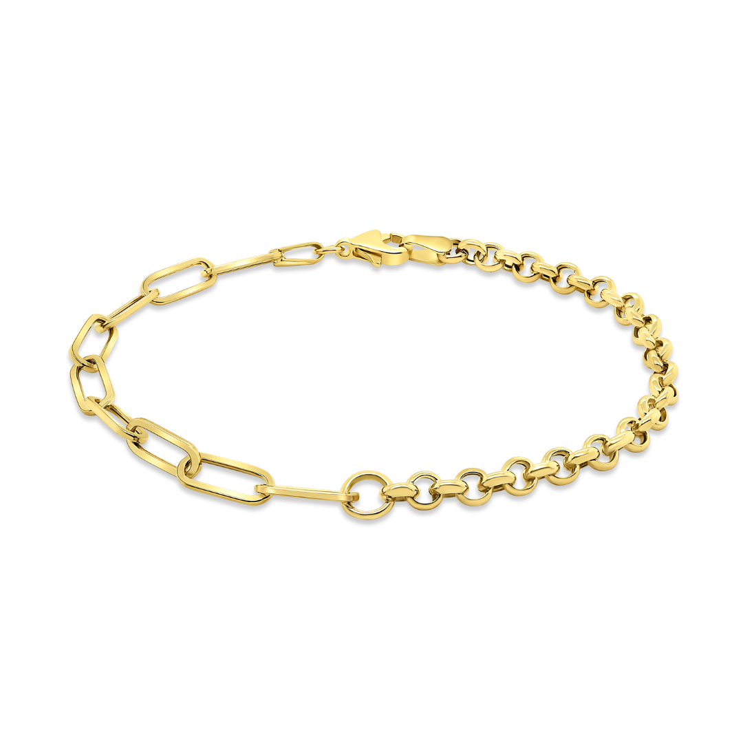 Brățară cu două tipuri de zale din aur galben de 14K.