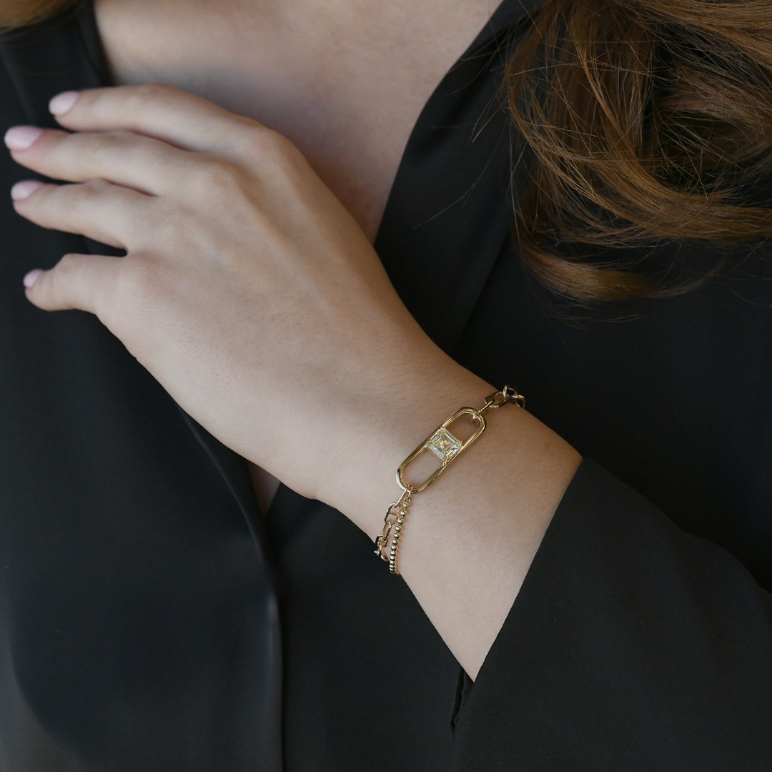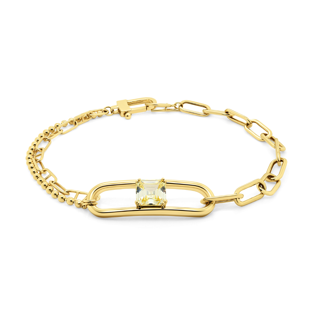 Brățară din aur galben de 14K, cu piatră cubic zirconia galbenă.