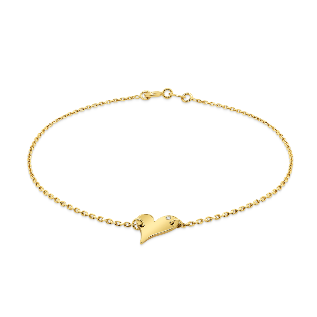 Brățară din aur galben de 14K și element în formă de inimă cu Diamant de 0.005ct.