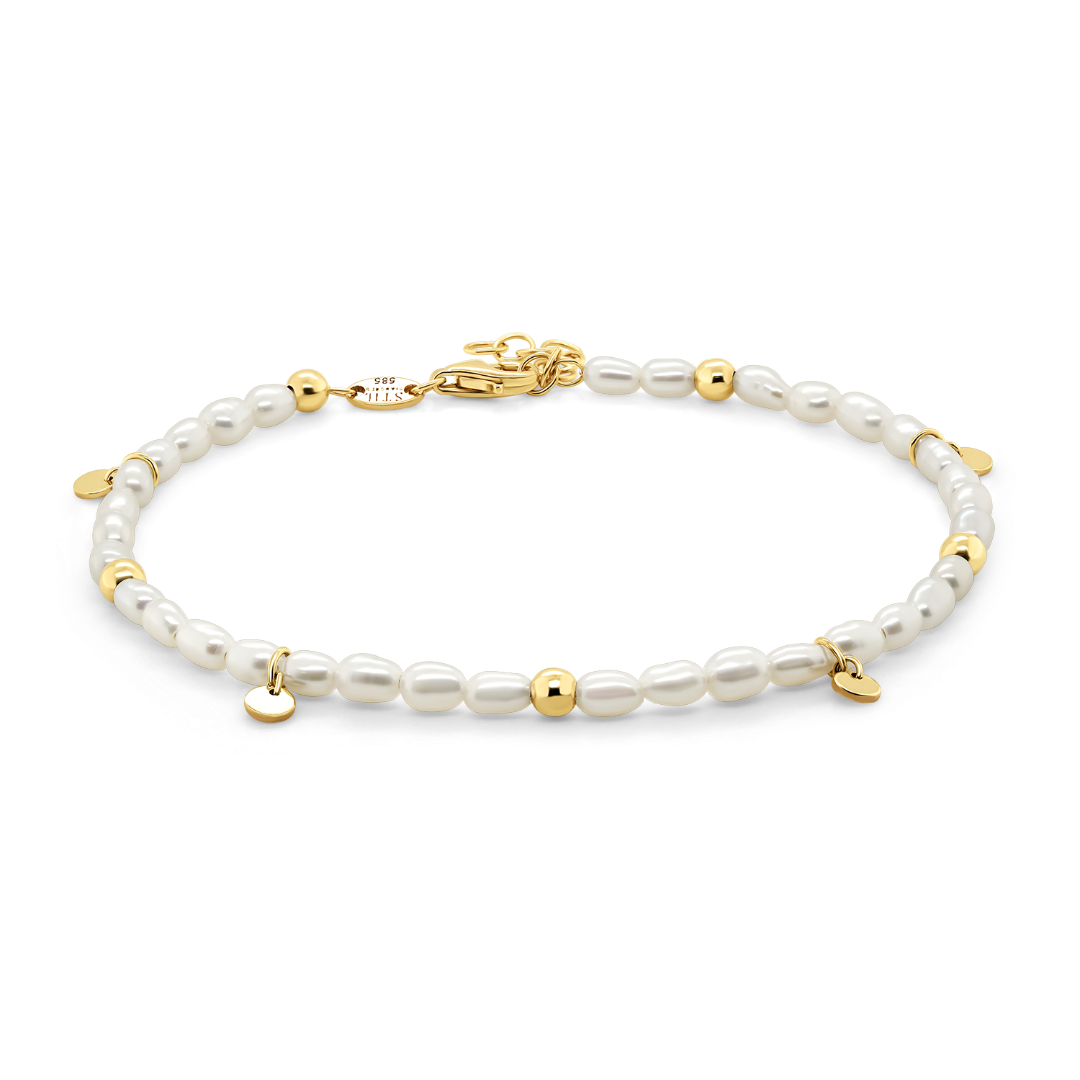 Brățară din aur galben de 14K cu Perle albe de cultură.