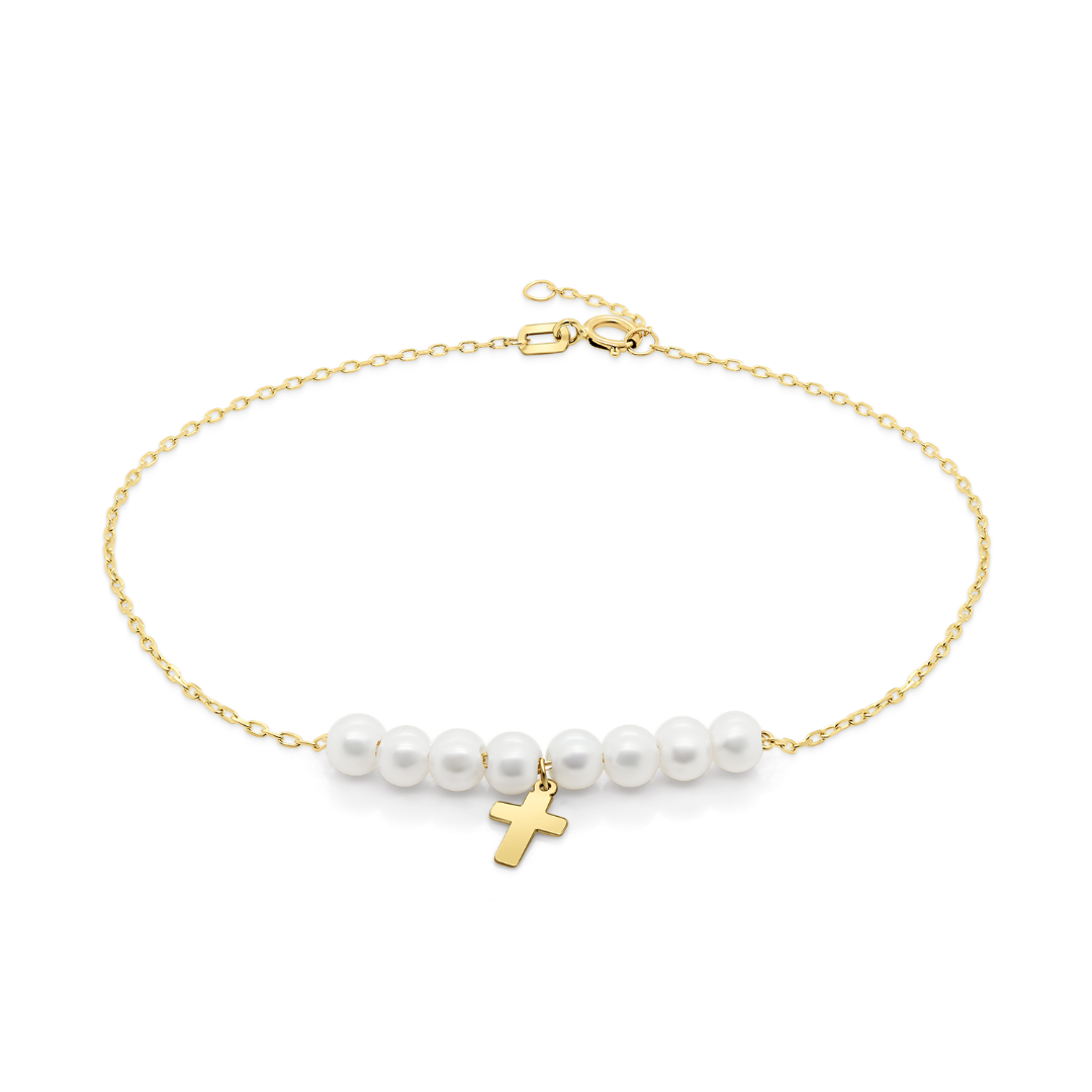 Brățară din aur galben de 14K cu perle de apă dulce.
