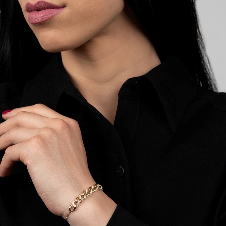 >Brăţară din aur galben de 18K, încrustată cu 180 Diamante naturale cu o greutate totală de 0.63ct.