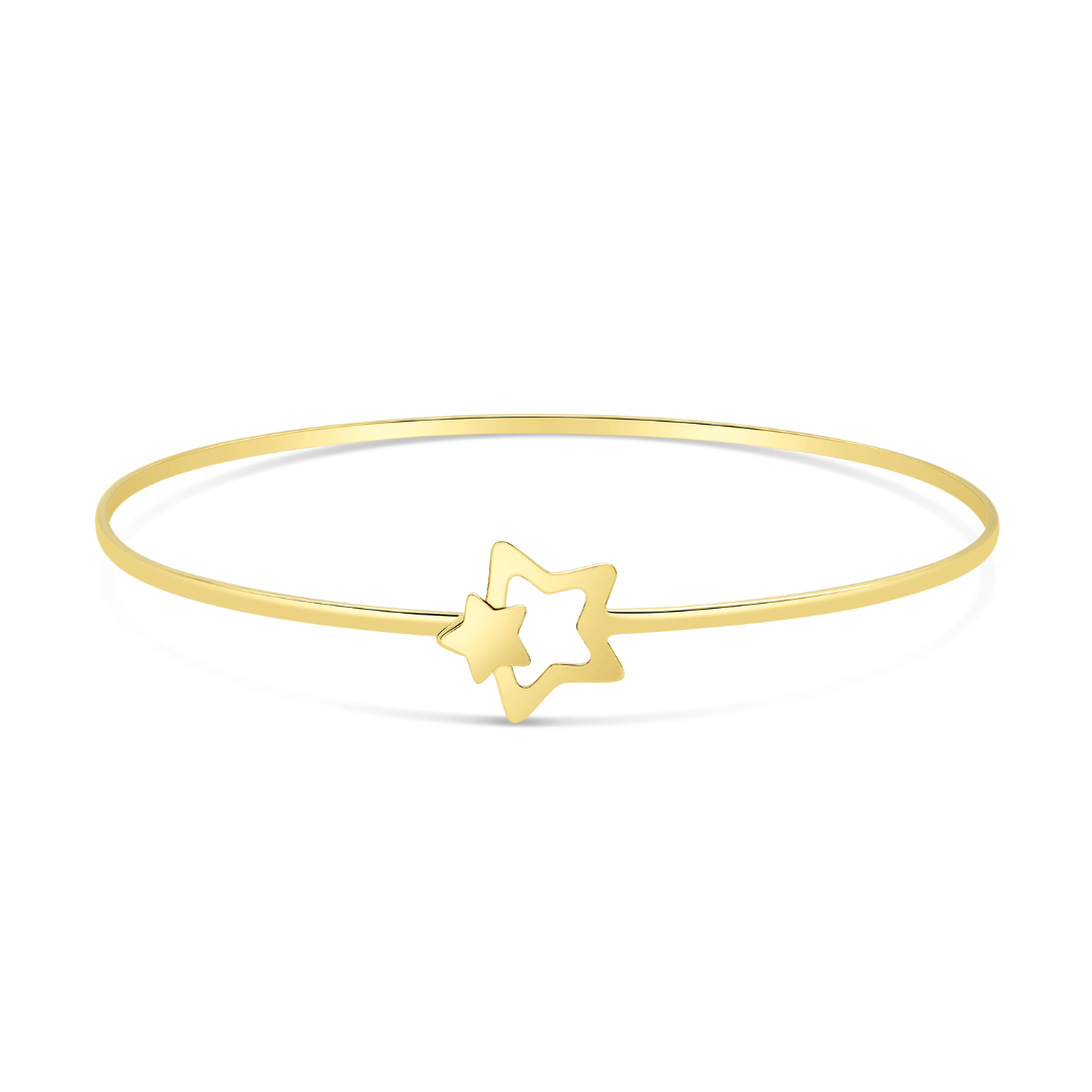 Brățară fixă din aur galben de 14K cu elemente în formă de stea.