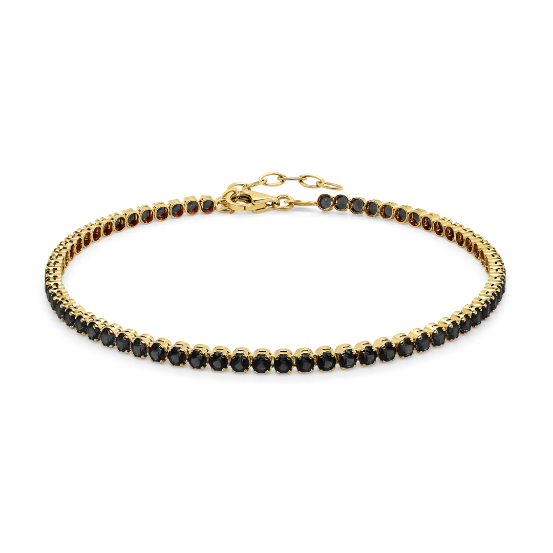 Brățară Tennis din aur galben de 14K cu pietre cubic zirconia negre.