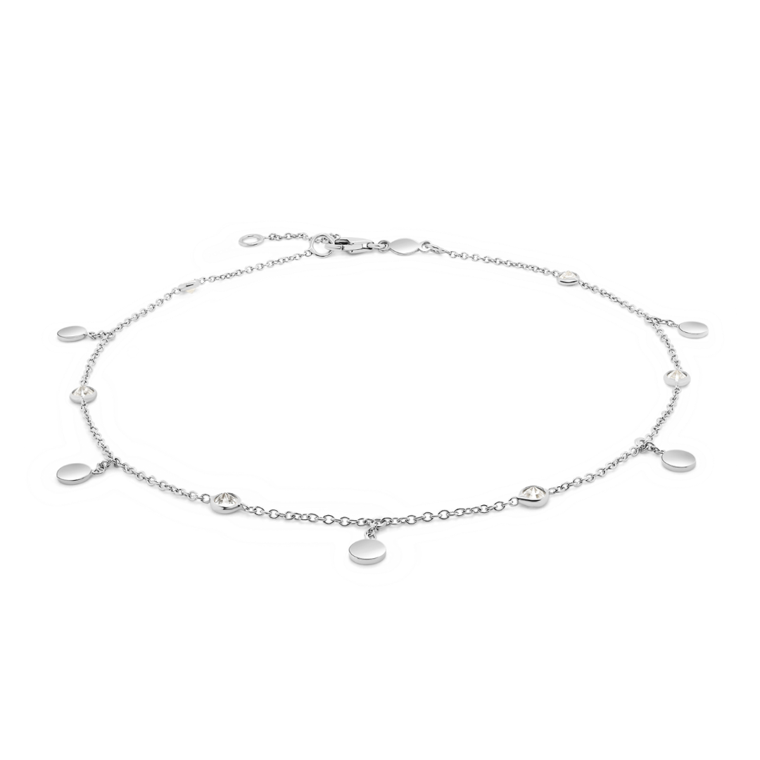 Brățară de picior din aur alb de 14K, cu elemente rotunde și pietre Cubic Zirconia.