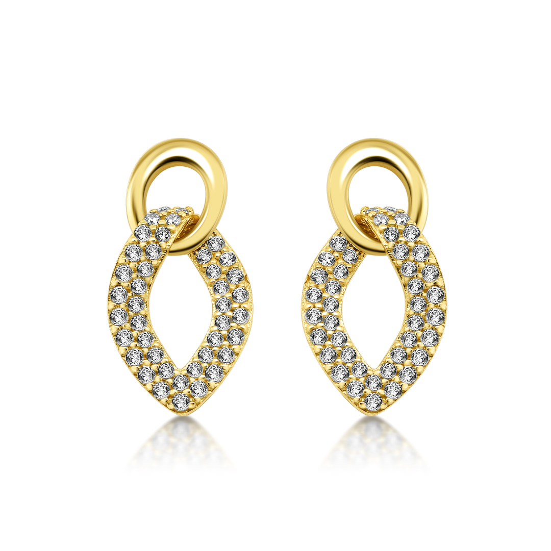 Cercei din aur galben de 14K cu pietre Cubic Zirconia.