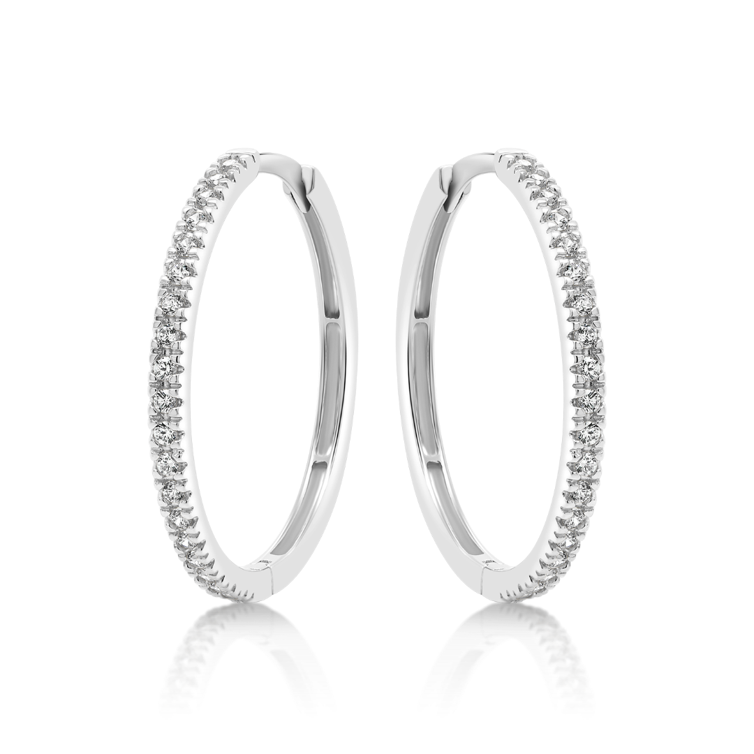 Cercei creole din aur alb de 14K cu pietre cubic zirconia.