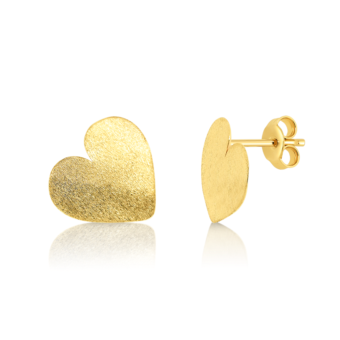 Cercei în formă de inimă cu efect satinat din aur galben de 14K.