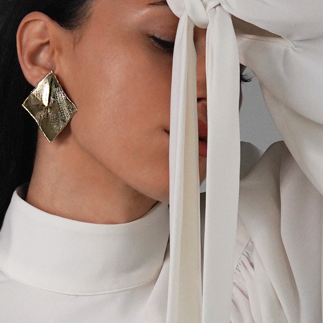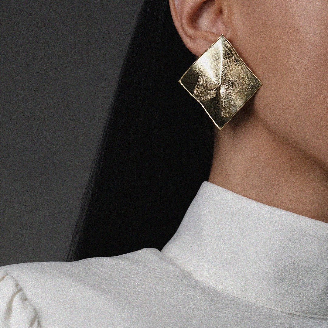 Cercei cu efect satinat din aur galben de 14K.