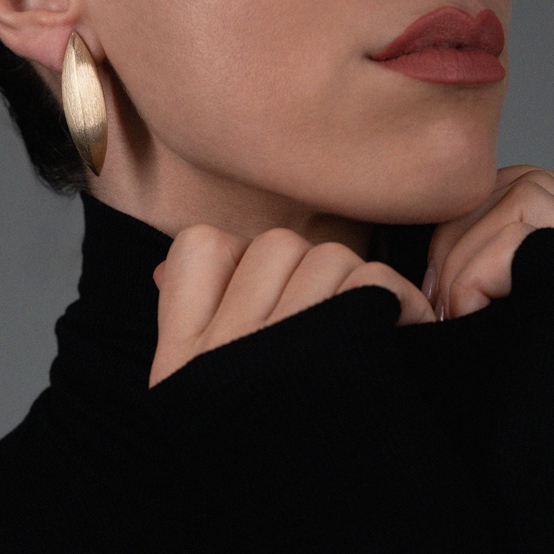 Cercei cu efect satinat din aur galben de 14K.