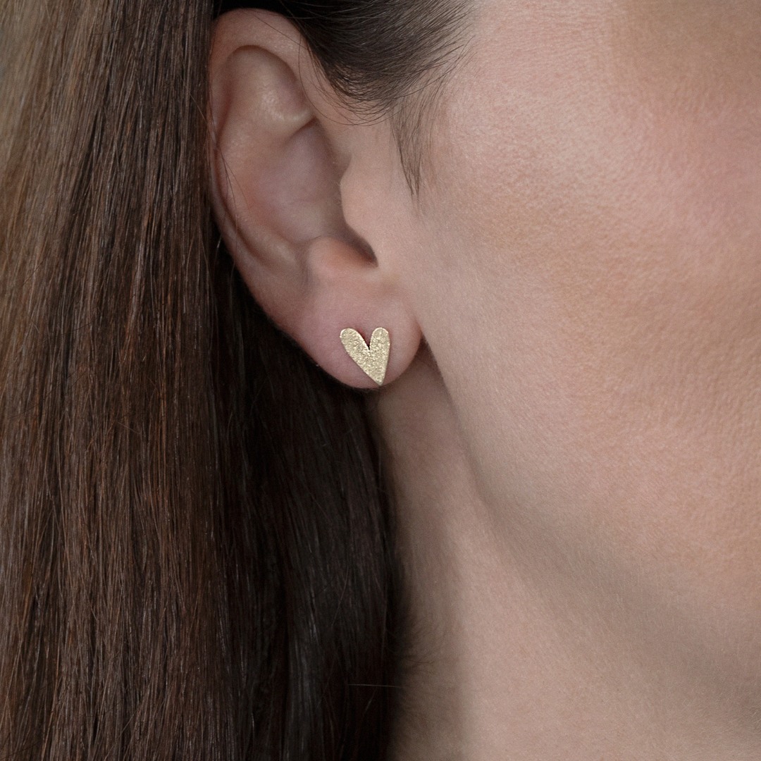 Cercei în formă de inimă cu efect satinat din aur galben de 14K.