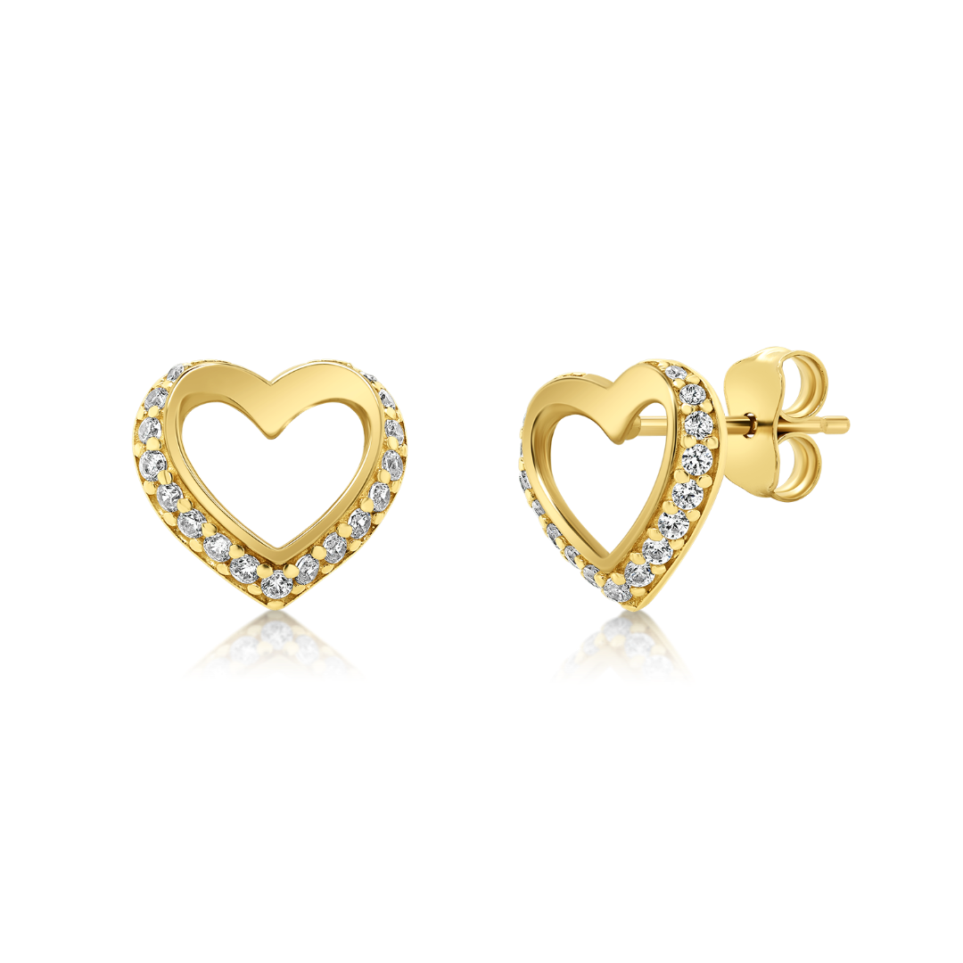 Cercei în formă de inimă din aur galben de 14K cu zirconii incolore.