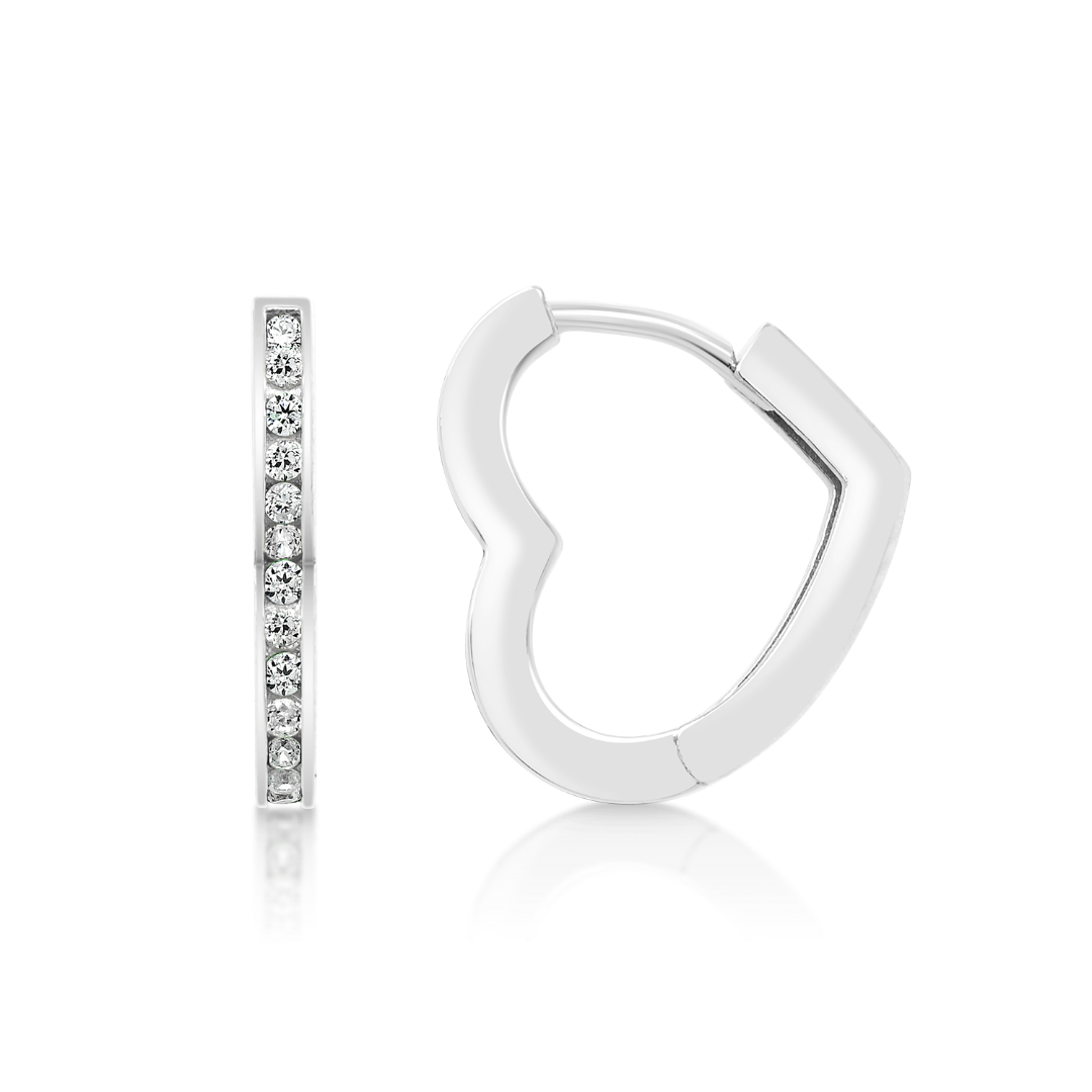 Cercei în formă de inimă din aur alb de 14K cu pietre cubic zirconia.