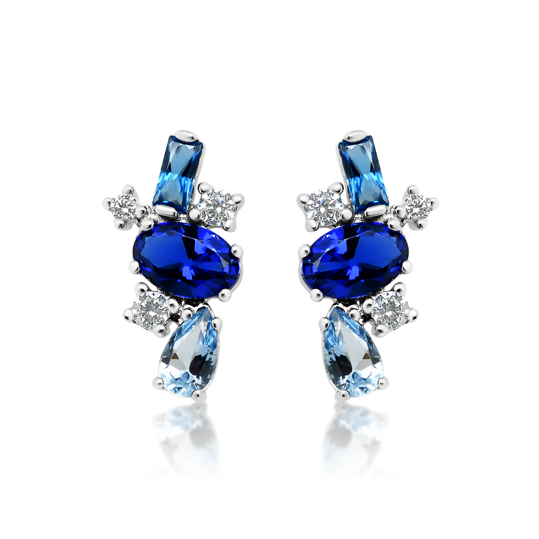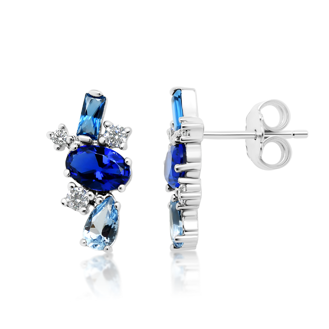 Cercei din aur alb de 14K cu pietre cubic zirconia.