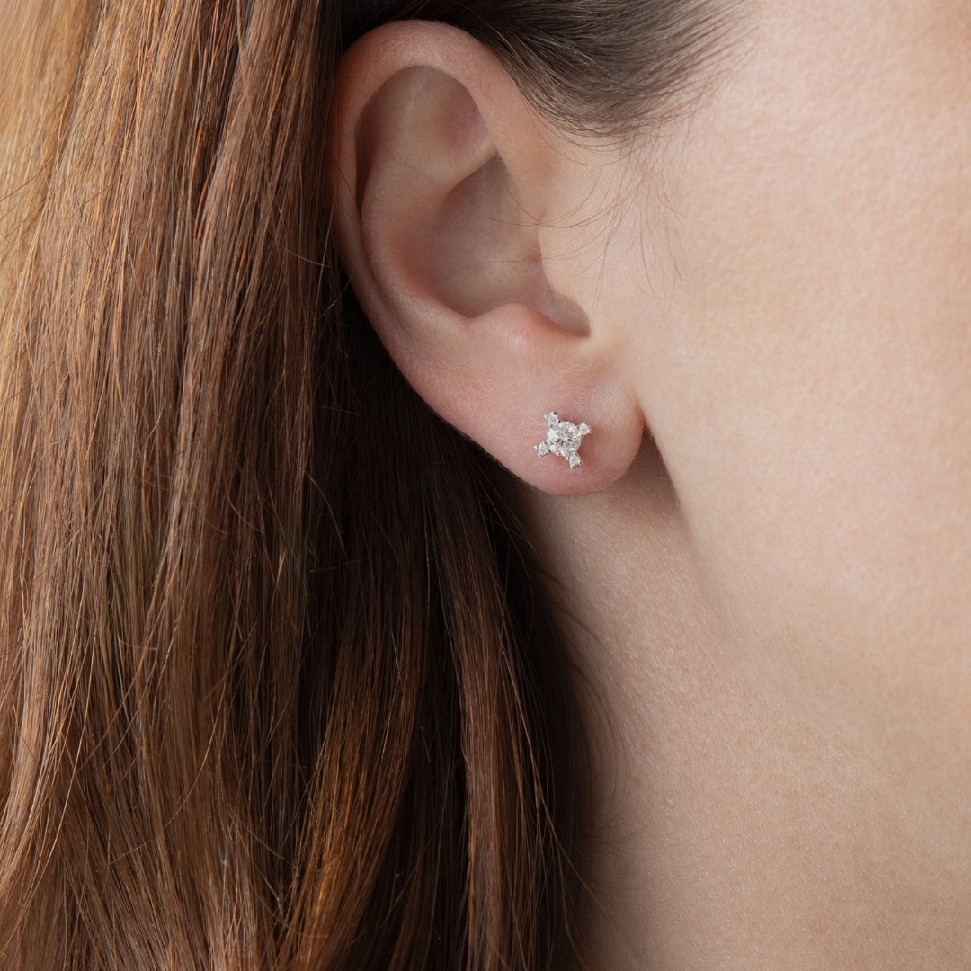 Cercei din aur alb de 14K cu pietre cubic zirconia.