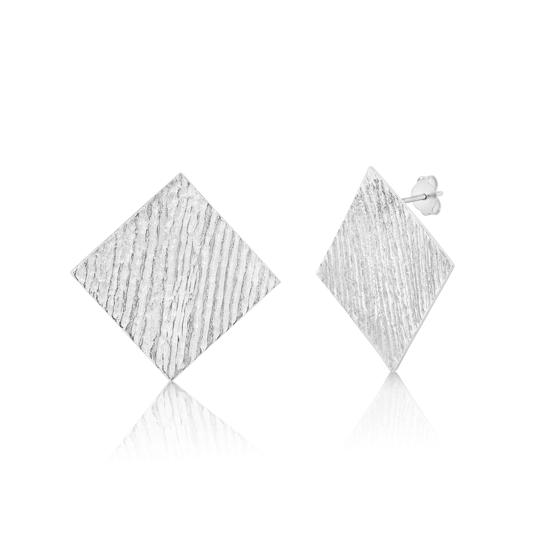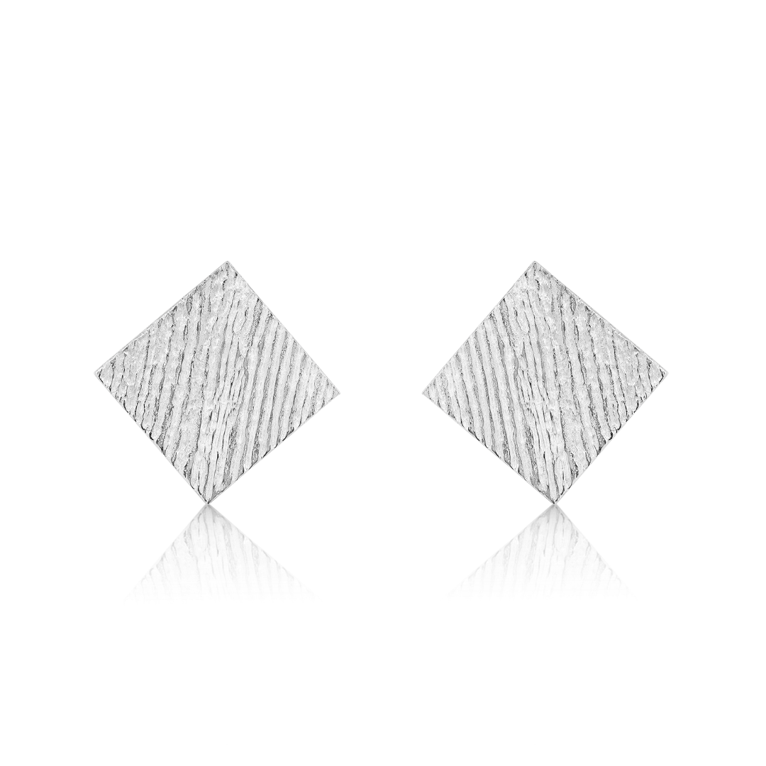 Cercei geometrici din aur alb de 14K cu efect mat.