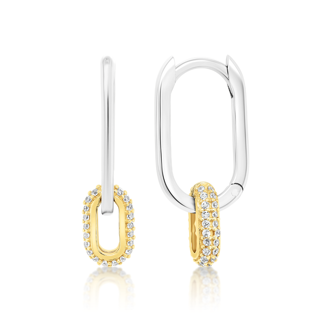 Cercei din aur alb de 14K cu elemente din aur galben și zirconia incolore.